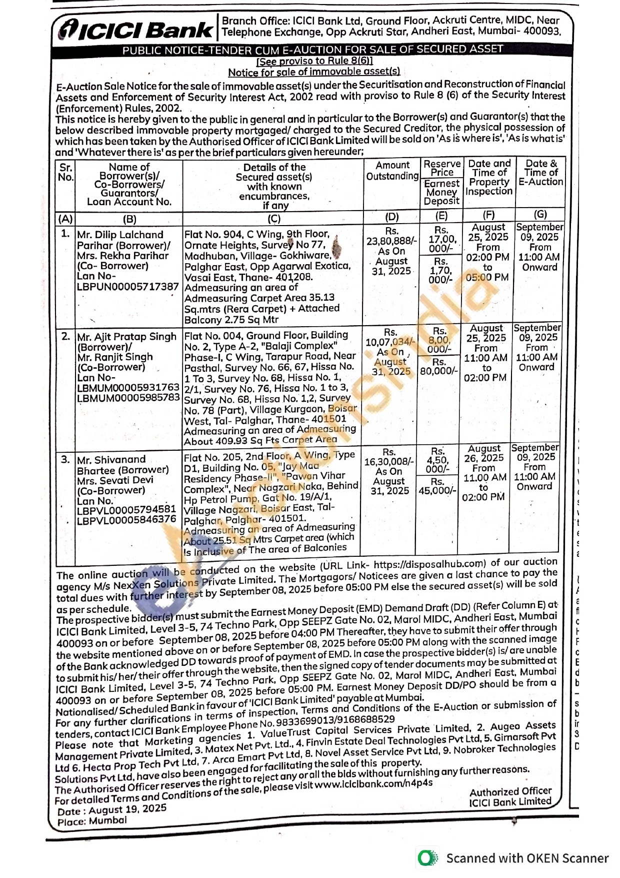 Contact Phone No. 9833699013/9168688529