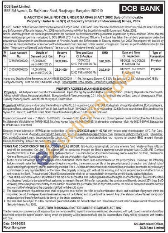 Property- All that piece and parcel of the land bearing Site No.5, House No-5, Katha No.384, Kodigenalli, Village Kasaba Hobi, Doddaballapura, Bangalore Rural, Measuring East to West 31 feet, North to South (40+39)/2=39.5, in all measuring 1228 Sq ft and bounded on: East land bearing Sy No.36/1, West: 20 feet Wide Road, North: Vacant Site bearing No-4, South: Vacant Site No-6.