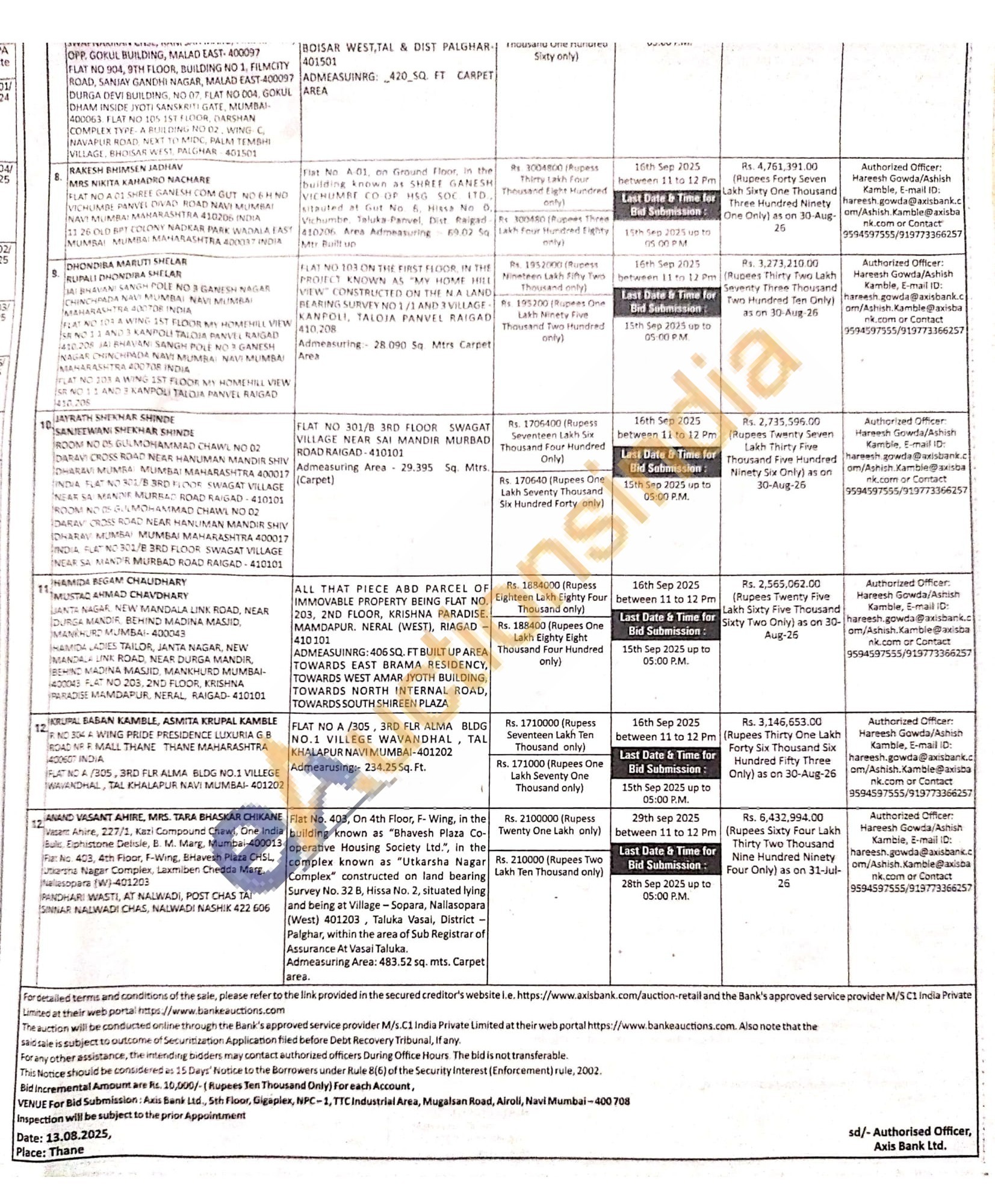 Contact Authorized Officer: Hareesh Gowda/Ashish Kamble 9594597555/919773366257