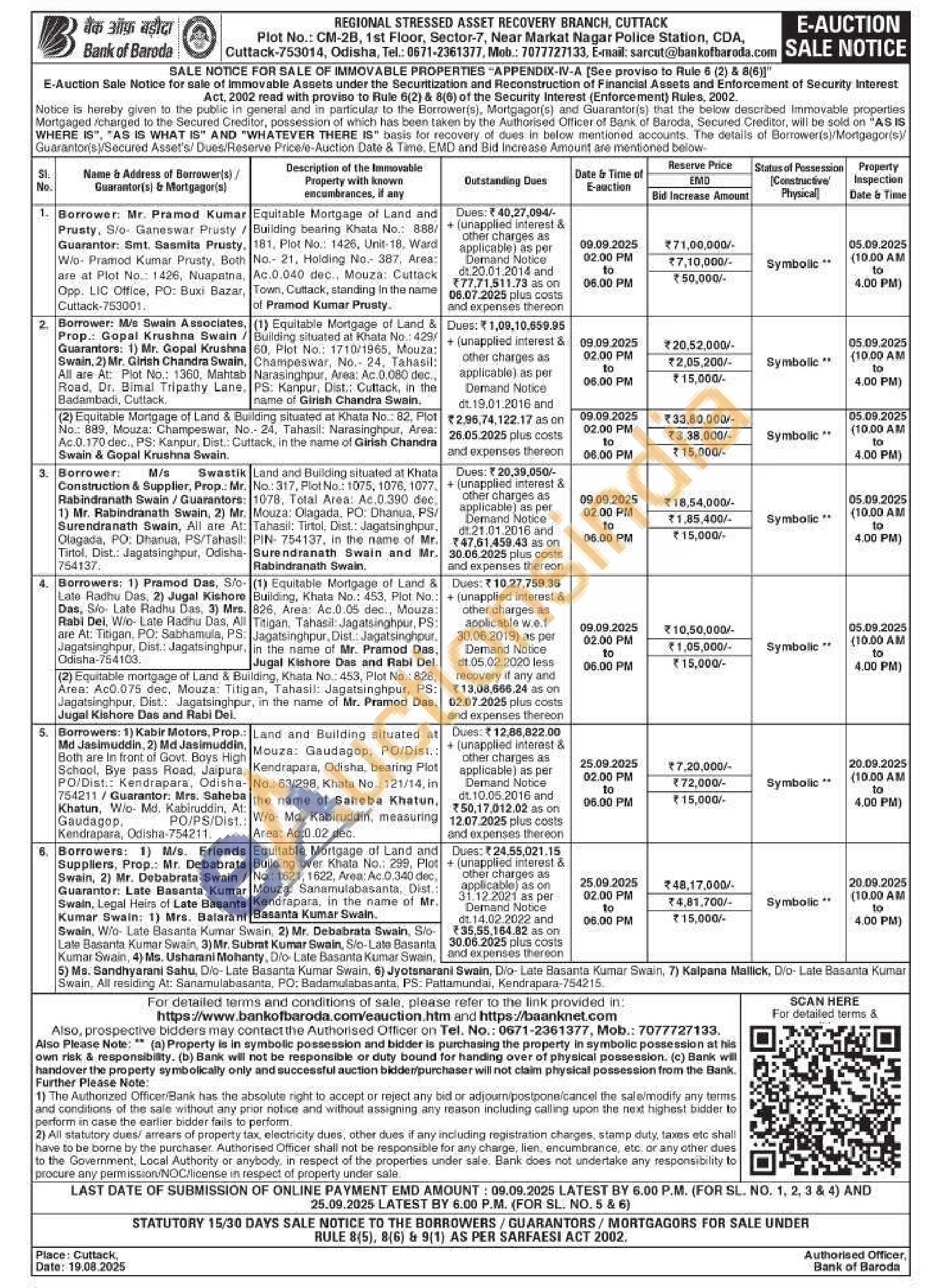 Equitable Mortgage of Land and Building bearing Khata No.: 8:88/181, Plot No.: 1426, Unit-18, Ward No. 21, Holding No. 387, Area: Ac.0.040 dec., Mouza: Cuttack Town, Cuttack, standing in the name of Pramod Kumar Prusty