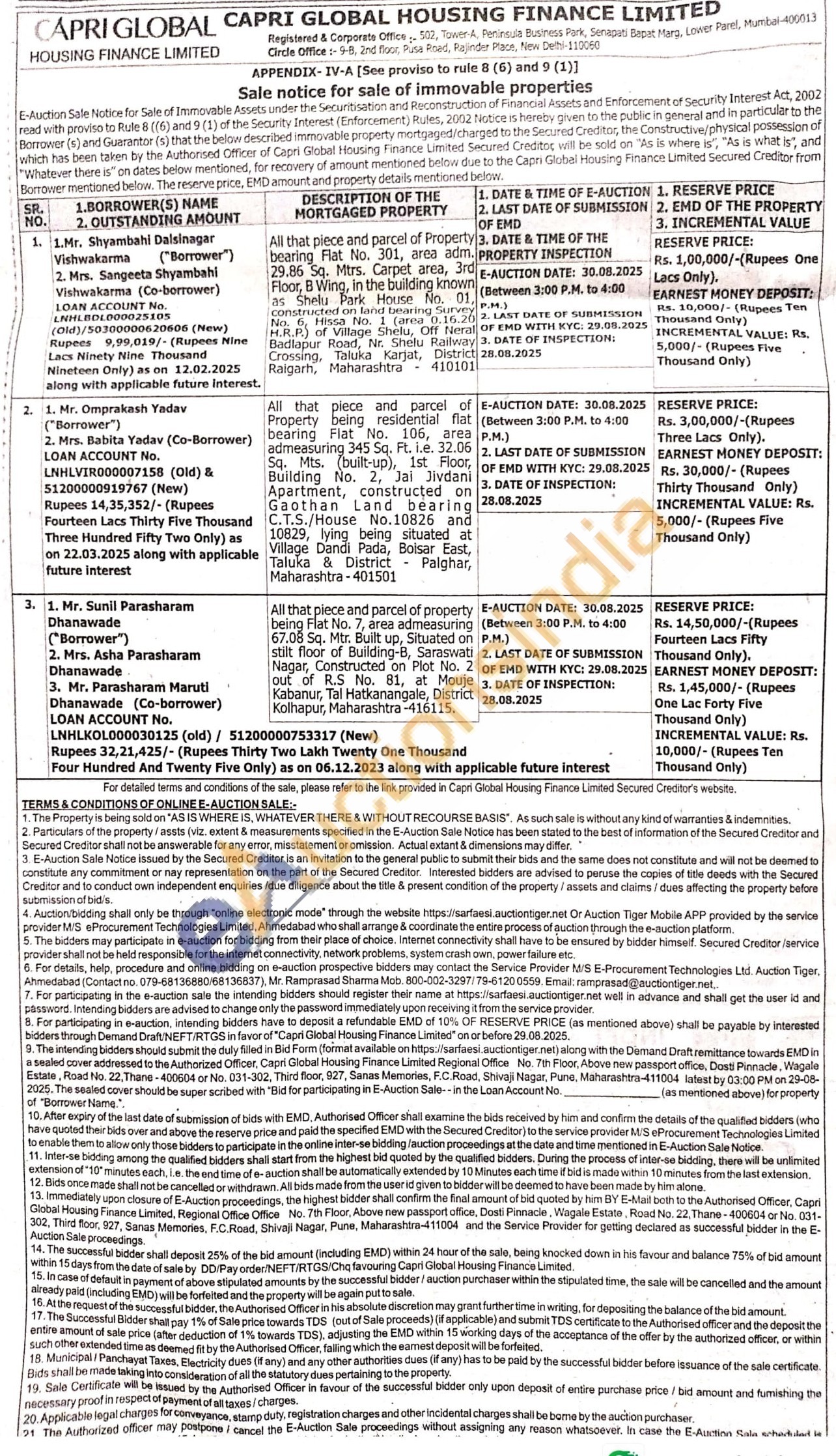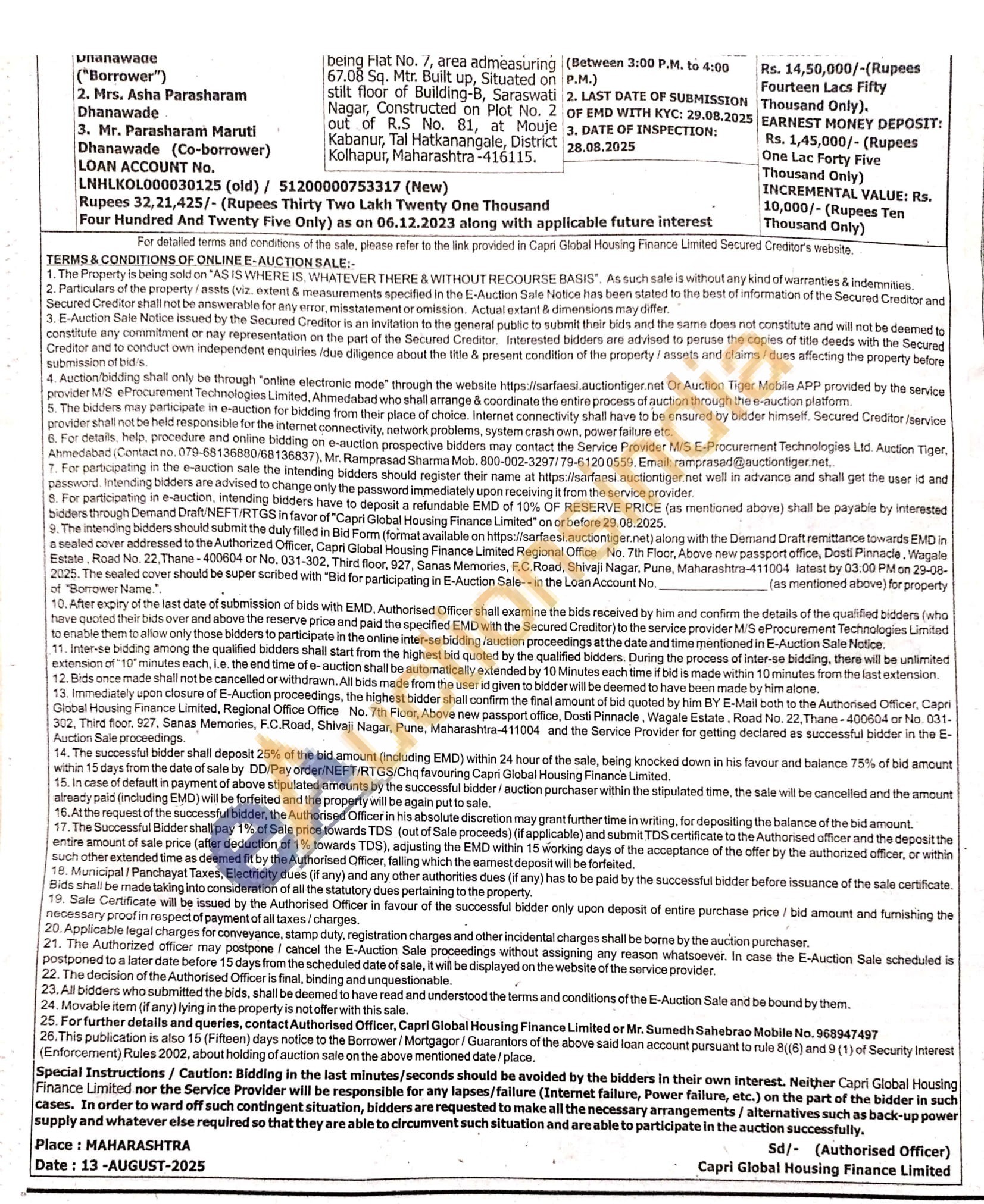 Contact Authorised Officer Mr. Sumedh Sahebrao Mobile No. 968947497