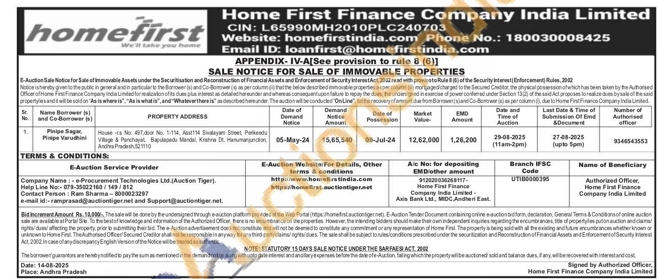 Housets No: 497,door No. 1-114, Asst114 Sivalayam Street Perikeedu Village & Panchayat, Bapulapadu Mandal, Krishna Dt. Hanumanjunction, Andhra Pradesh 521110