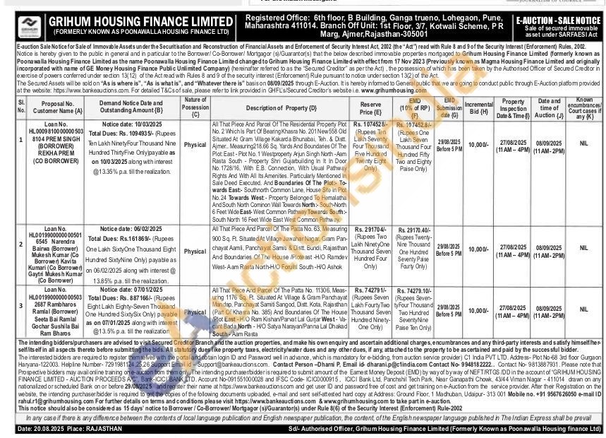 All That Piece And Parcel Of The Residential Property Plot No. 2 Which is Part Of Bearing Khasra No. 201 New 558 Old Situated At Gram Village Kakarda Bhunabai, Teh. & Distt. Ajmer. Measuring 218.66 Sq. Yards And Boundaries Of The Plot: East-Plot No. 1 Westproperty Arjun Singh North-Aam Rasta South Property Shri Gujarbuilding in it in Door No. 1728/16, With E.B. Connection, With Usual Pathway Rights And With All Its Amenities Particularly Mentioned In Sale Deed Executed. And Boundaries Of The Plot: To-wards East: Southnorth Common Lane, House Site in Plot No.24 Towards West-Property Belonged To Hemalatha And South North Cominon Wall Towards North-South-North 6 Feet Wide East-West Common Pathway Towards South: South North 16 Feet Wide East West Common Pathway