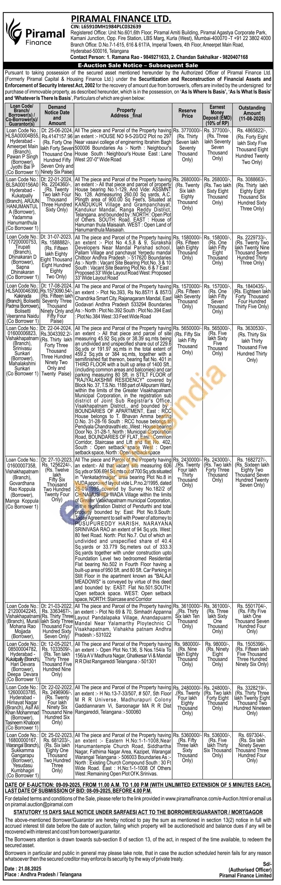 Contact Person: 1. Ramana Rao - 9849271633, 2. Chandan Sakhalkar - 9820407168