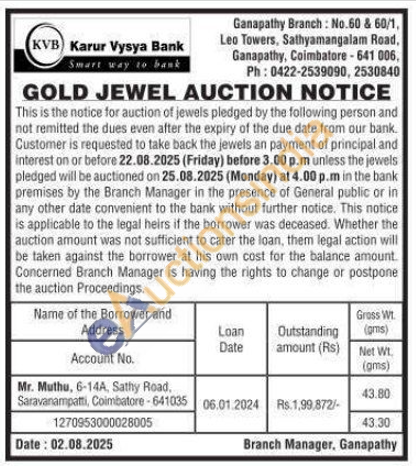 Karur Vysya Bank Gold Auctions Auction in Coimbatore