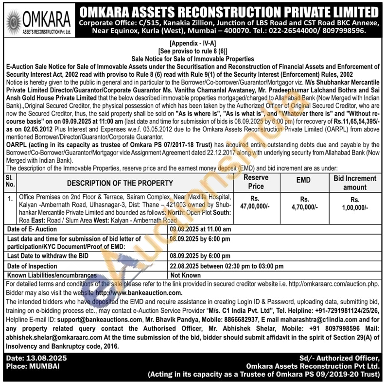 contact the Authorised Officer, Mr. Abhishek Shelar, Mobile: +91 8097998596