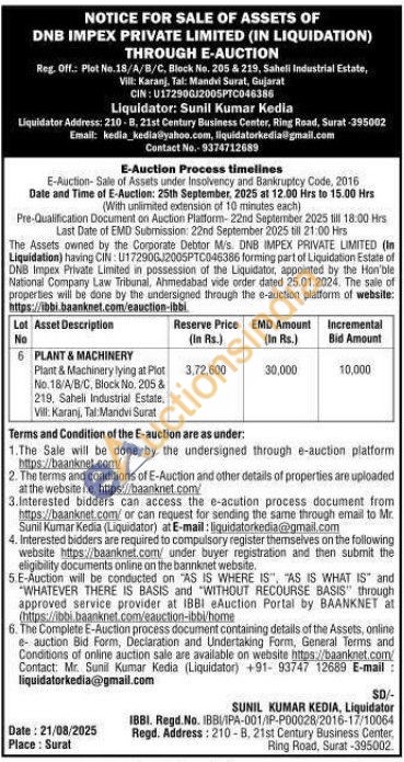 Plant & Machinery lying at Plot No.18/A/B/C, Block No. 205 & 219, Saheli Industrial Estate. Vill: Karanj, Tal: Mandvi Surat