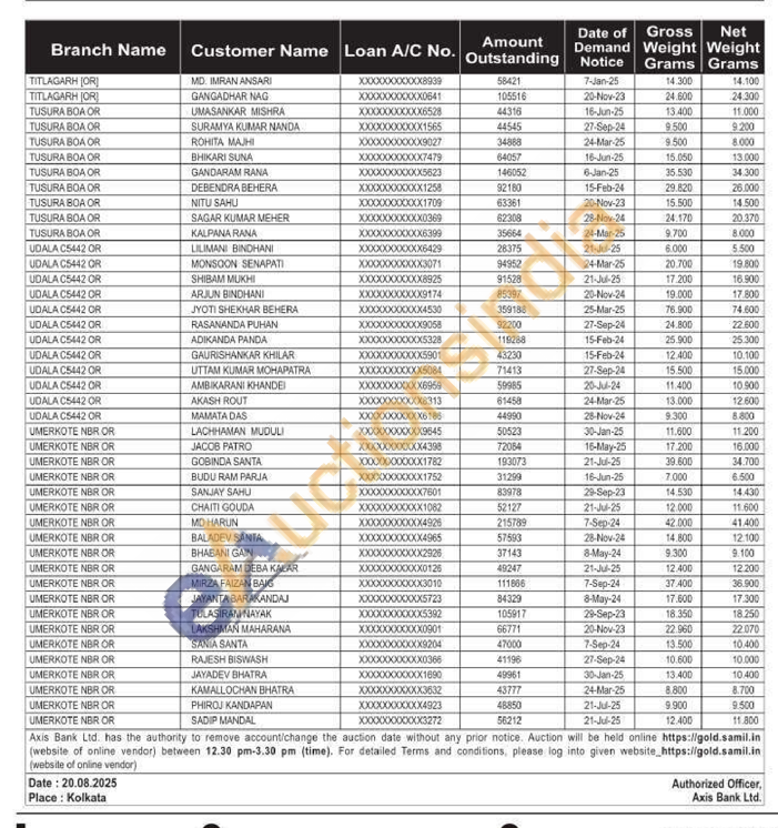 Axis Bank Gold Auctions Auction in Puri