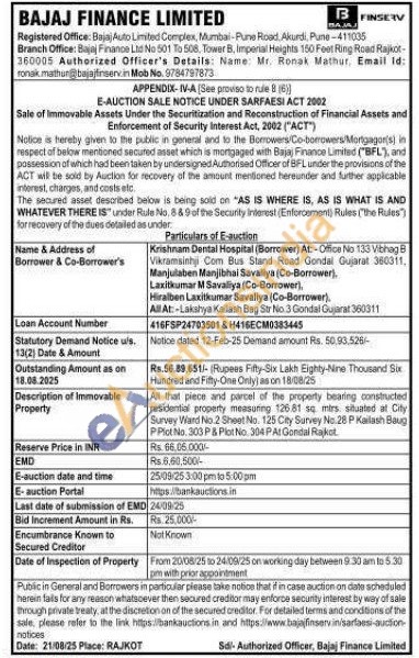 All that piece and parcel of the property bearing constructed residential property measuring 12681 sq mtrs situated at City Survey Ward No.2 Sheet No. 125 City Survey No.28 P Kailash Baug PiPlot No. 303 P & Plot No. 304 PAt Gondal Rajkot