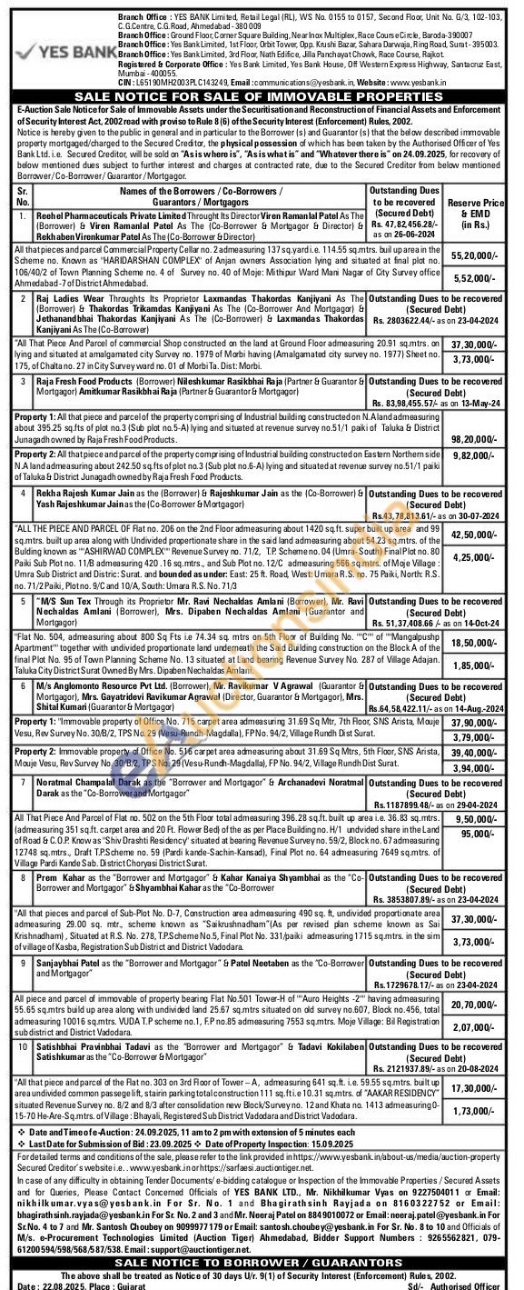 All piece and parcel of immovable of property bearing Flat No.501 Tower-H of "Auro Heights -2" having admeasuring 55.65 sq.mtrs build up area along with undivided land 25.67 sq.mtrs situated on old survey no.607, Block no.456, total admeasuring 10016 sq.mtrs. VUDA T.P scheme no.1, F.P no.85 admeasuring 7553 sq.mtrs. Moje Village: Bil Registration sub district and District Vadodara.