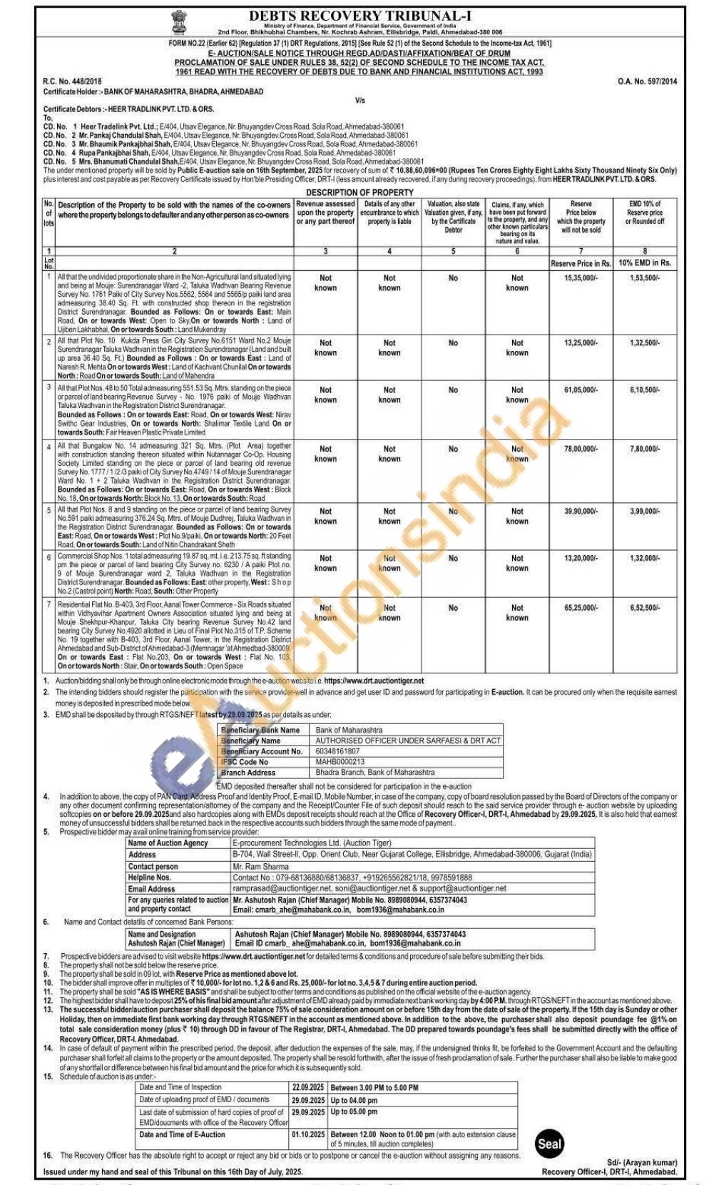 All that Plot No. 10 Kukda Press Gin City Survey No 6151 Ward No.2 Mouje Surendranagar Taluka Wadhvan in the Registration Surendranagar (Land and buill up area 36.40 Sq. Ft.) Bounded as Follows: On or towards East: Land of Naresh R. Mehta On or towards West: Land of Kachvant Chunilal On or towards North: Read On or towards South: Land of Mahendra