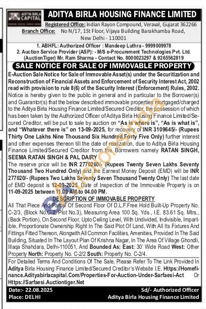 All That Piece And Parcel Of Second Floor Of D.L.F.Free Hold Built-Up Property No. C-2/3, (Block No.C-2, Plot No.3), Measuring Area 100 Sq. Yds., I.E. 83.61 Sq. Mtrs., (Back Portion), On Second Floor, Upto Celling Level, With Undivided, Indivisible, Impart ible, Proportionate Ownership Right In The Said Plot Of Land, With All Its Fixtures And Fittings Fitted Thereon, Alongwith All Common Facilities, Amenities, Provided In The Said Building, Situated In The Layout Plan Of Krishna Nagar, In The Area Of Village Ghondli, Illaqa Shahdara, Delhi-110051, And Bounded As: East: 30° Wide Road West: Other Property North: Property No. C-2/2 South: Property No. C-2/4.