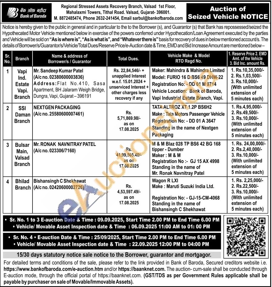 Maker: Mahindra & Mahindra Limited Model: FURIO 16 D BS6 49 DHW-22 Registration No: - DD 01 M 9714 Vehicle Location: Bank of Baroda, Vapi Industrial Estate Branch, Vapi