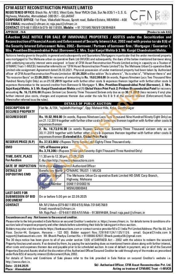 Mr. Bhavik Pnadya : 88666 82937 & Mr. Raja Paul : 07966118554/9136994684