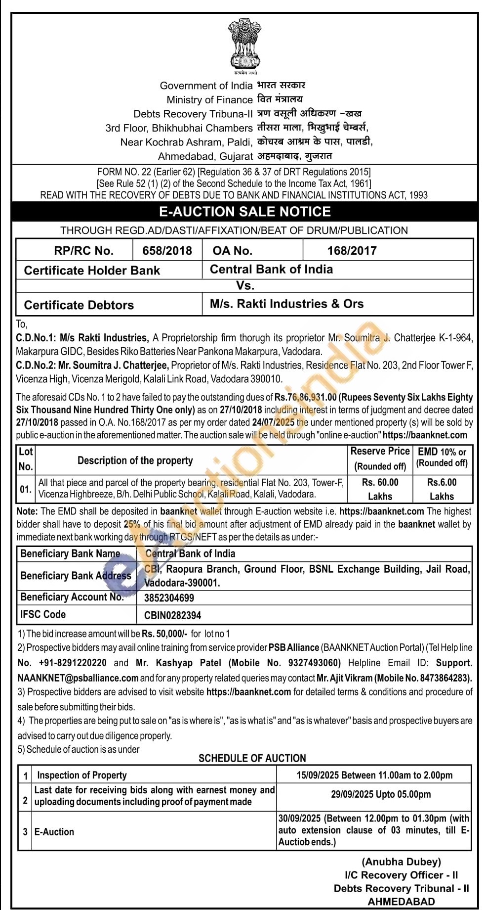 All that piece and parcel of the property bearing, residential Flat No. 203, Tower-F Vicenza Highbreeze, Bih. Delhi Public School, Kalali Road, Kalali, Vadodara