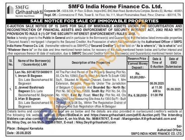 All The Part And Parcel of The Property Bearing Plot No. 55, Cts No. 10560, East To West And North To South 1350 Sq.ft., Situated At Waddar Chavani, Sector No. 1, Mm Extension, Belagavi, Presently Under The Jurisdiction of Belgaum Corporation And Bounded By:- North By: Plot No. 56, Cts No. 10559, South By: Plot No. 54, Cts No. 10561, East By: Road, West By: Plot No. 48, Cts No. 10568 Total Measuring Site Area As 1350 Sq Ft-Built Up Area 1879.08 Sq., Within The Registration District of Belagavi And Sub Registration office At Belagavi