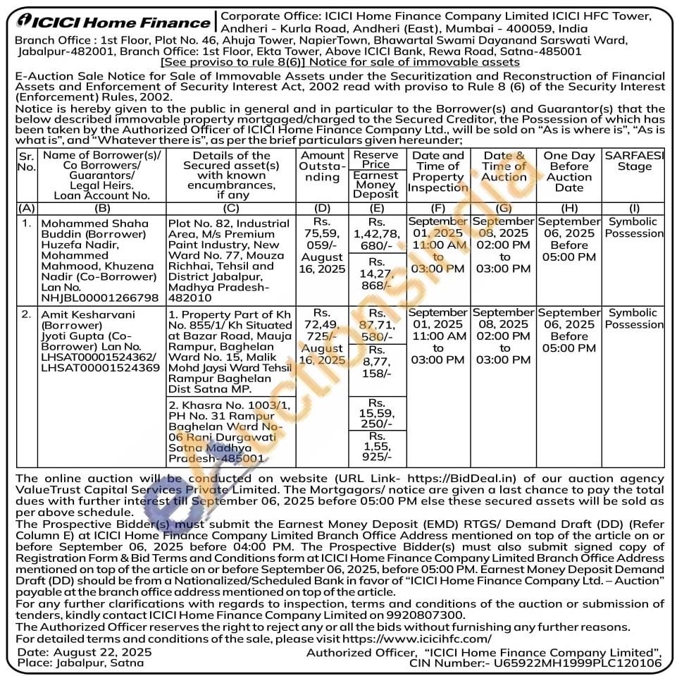 1. Property Part of Kh No. 855/1/Kh Situated at Bazar Road, Mauja Rampur, Baghelan Ward No. 15, Malik Mohd Jaysi Ward Tehsil Rampur Baghelan Dist Satna MP