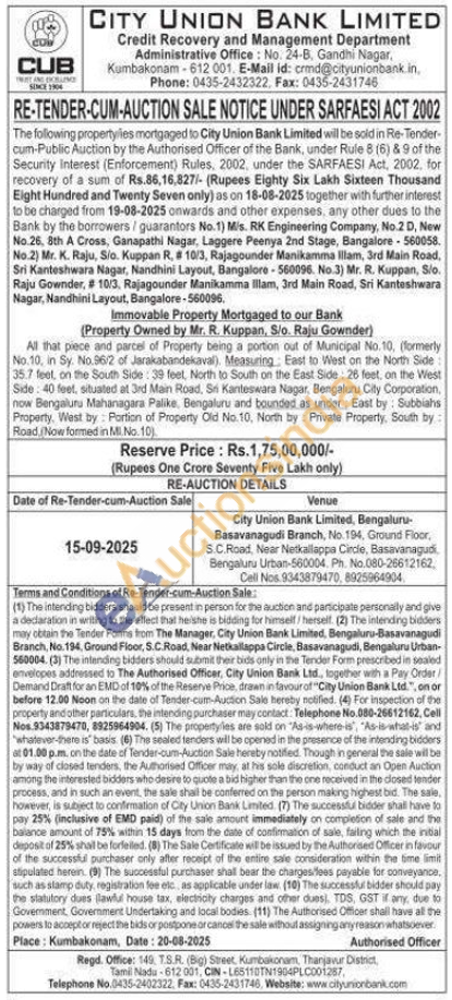 All that piece and parcel of Property being a portion out of Municipal No. 10, (formerly No.10, in Sy. No.96/2 of Jarakabandekaval). Measuring East to West on the North Side 35.7 feet, on the South Side 39 feet, North to South on the East Side 26 feet, on the West Side: 40 feet, situated at 3rd Man Road, Srn Kanteswara Nagar, Bengaluru City Corporation, now Bengaluru Mahanagara Palike. Bengaluru and bounded as under: East by: Subbiahs Property, West by Portion of Property Old No.10, North by Private Property, South by: Road, Now formed in M.No. 10).
