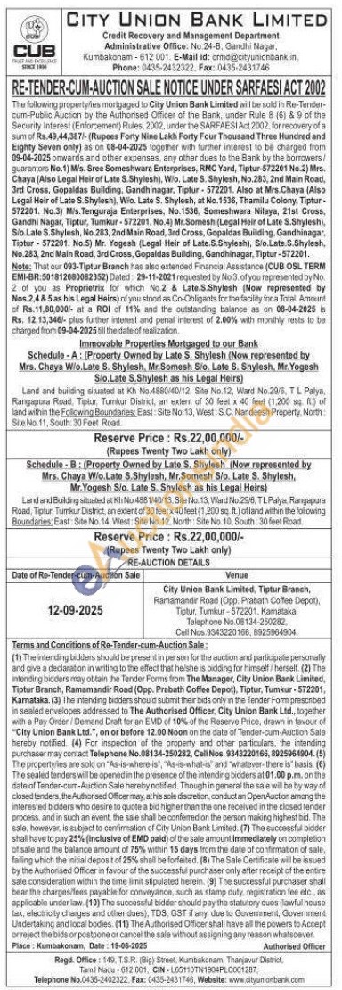 2) Land and Building situated at Kh No. 4881/40/13, Site No. 13, Ward No.29/6, TLPalya Rangapura Road, Tiptur. Tumkur District, an extent of 30 feet x 40 feet (1,200 sq. ft.) of land within the following Boundaries: East: Site No. 14, West: Site No. 12. North: Site No. 10, South: 30 feet Road