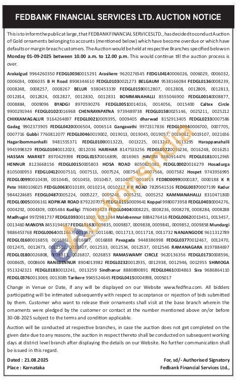 Fedbank Financial Services Ltd Gold Auctions Auction in Dharwad