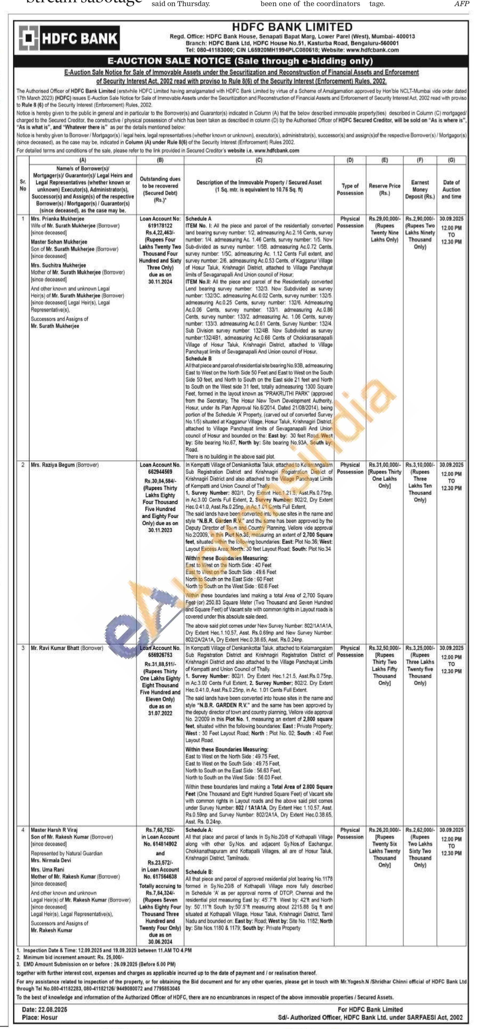 Schedule A: All that place and parcel of lands in Sy.No.20/8 of Kothapali Village along with other Sy. Nos. and adjacent Sy.Nos of Eachangur, Chokkanathapuram and Kottapalli Villages, all are of Hosur Taluk Krishnagiri District, Tamilnadu,