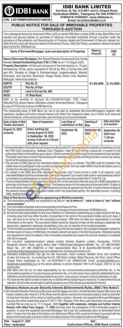 All that part and parcel of the plot bearing no. 19 part admeasuring 120 Sq, yards, equivalent to 100.32 Sq. Mts, in Survey Nos. 603 and 605, Situated at Village & Grampanchayat: Lalgadimalakpet. Mandal Shamirpet, and Sub-Dist: Shamirpet, Ranga Reddy Datrict (now Medchal Malkajgiri),