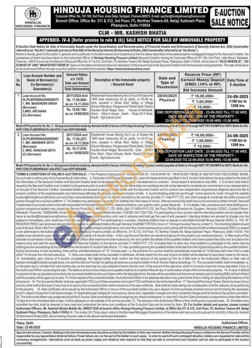 Residential House Bering No.5 out of khasra No 1900 area measuring 52 sq yards, ie 43.47 sq. mtrs, situated in Shree Ram Vadika, in Village Dhoom Manikpur, Pargana and Tehsil Dadri, District Gautam Budh Nagar. Bounded By Ead Vcar Plot, West: Other's House, North: Road 23 It Wide, South: Agriculture Land