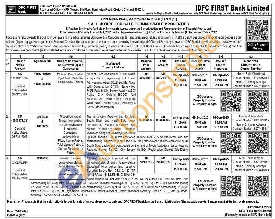 All That Piece And Parcel Of Immovable Property Comprising Of Land Admeasuring About 60.08 Sq. Mtr. Along With Construction Of City Survey No. 740/B Paiki In City Survey Ward No. 2 Of Rajkot City, Gujarat-360001, And Bounded As: East Other's Property, West Road, North: Other's Property & South: Other's Property