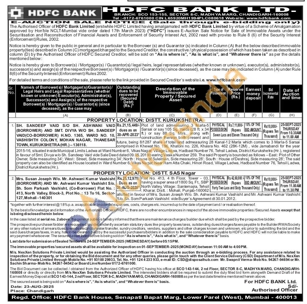 Flat No. 413, 4 th Floor, Tower 03, having a super area of 1800 Sq. Ft, SBP North Valley, Village: Santemajra, Tehsil Kharar , Dist Mohali. allotted in favour of Mrs. Susan Joseph W/o. Sh. Ashwani Kumar Vashisht and Mr. Ashwani Kumar Vashisht S/o. Sh. Som Parkash Vashisht vide Buyer's Agreement dt 30.01.2012.