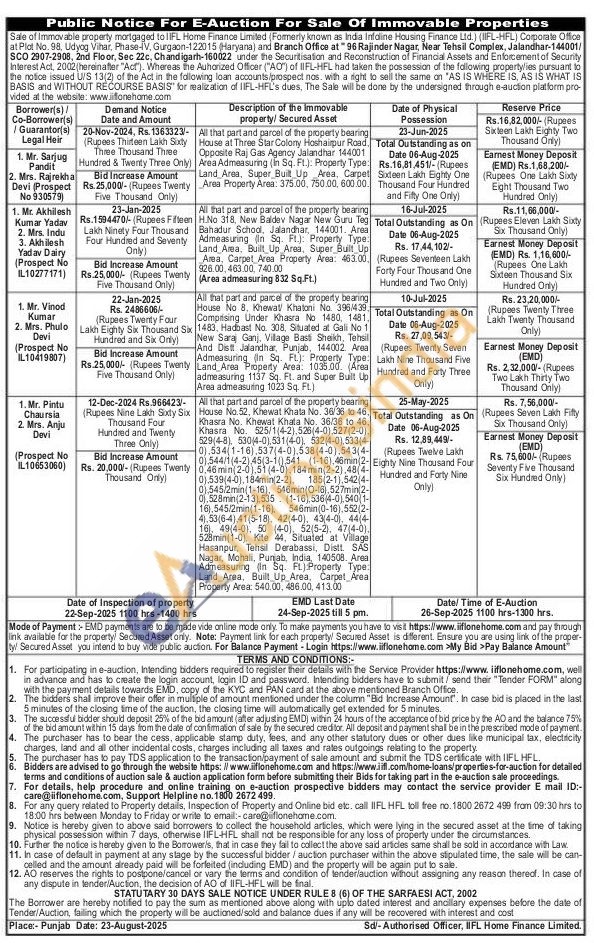 All that part and parcel of the property bearing House No 8, Khewat Khatoni No. 396/439. 1483 Comprising Under Khasra No 1480, 1481 1483, Hadbast No. 308. Situated at Gali No 1 New Saraj Ganj, Village Basti Sheikh, Tehsil And Dist Jalandhar, Punjab, 144002 Area Admeasuring (In Sq. FL): Property Type: Land Area Property Area. 1035.00. (Area admeasuring 1137 Sq. Ft. and Super Built Up Area admeasuring 1023 Sq. FL.)