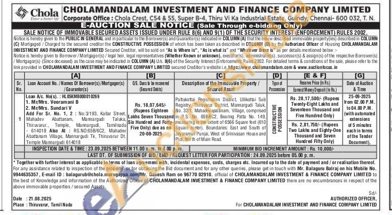 Pattukottal Registration District, Uilikottai Sub Registry, Thiruvarur District, Mannargudi Taluk No. 32/1, Mahadevapattinam, Village, comprised in R.S. No. 65B/6C2, Bearing Patta No. 149,measuring in the extent of 6566 Square feet (610) Square meter). Boundaries: East and South of Jayaraman Punjai, West of Srinivasan House and Plot, North of Main Road