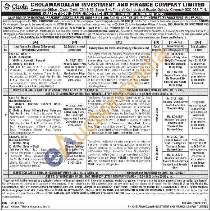 The subject residential property comprises an extent of 4.05 ares of land in Re Sy No 533/2/2 in old Sy No 166/5/1, Block No. 06, Building No. 6/82 and everything in Poruvazhy Village, Kunnathur Taluk. Shasthamkutta sub district, Kollam district as per sale deed no 32421 Boundaries as per Deed: NORTH Property of Bijesh SOUTH: Panchayath Road EAST: Property of Mamachan WEST: Property of Papachan