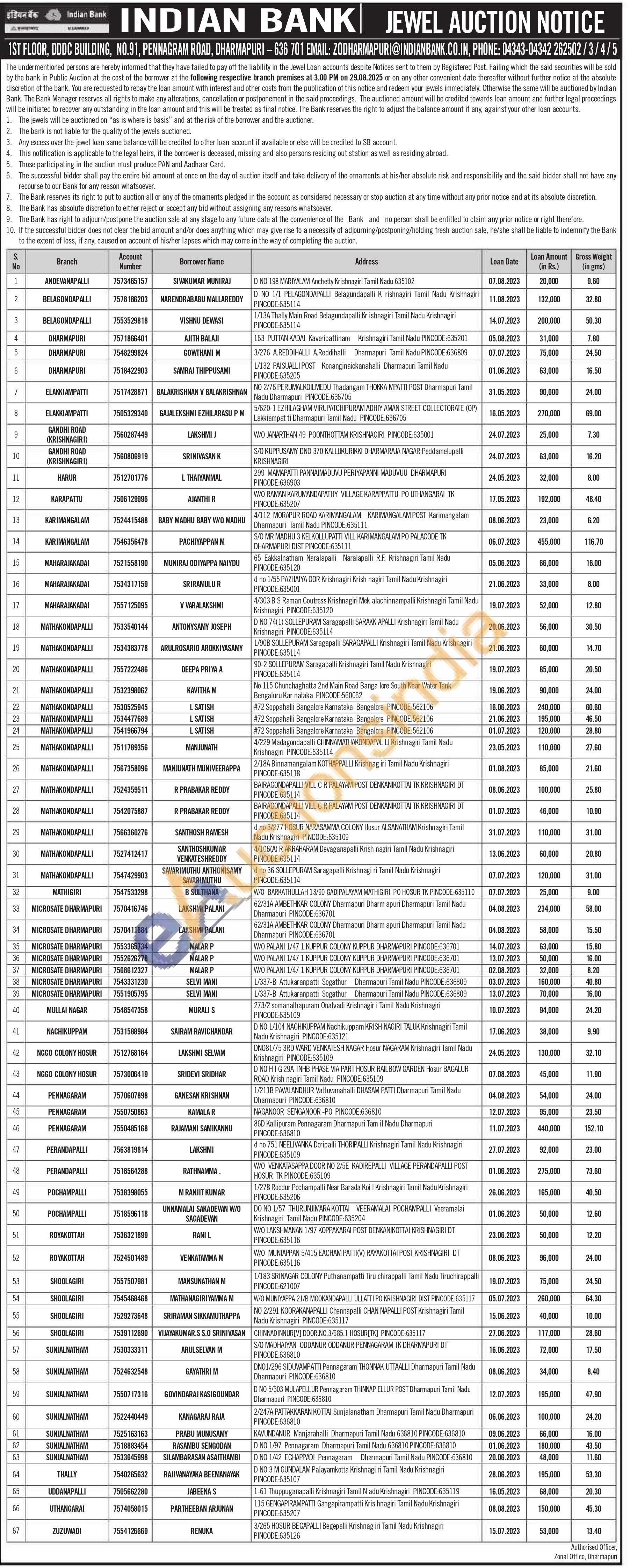 Indian Bank Gold Auctions Auction in Dharmapuri