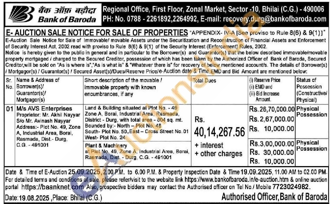 Plant & Machinery at Plot No. 49, Zone A, Industrial Area, Borai, Rasmada, Dist. Durg, C.G.491001
