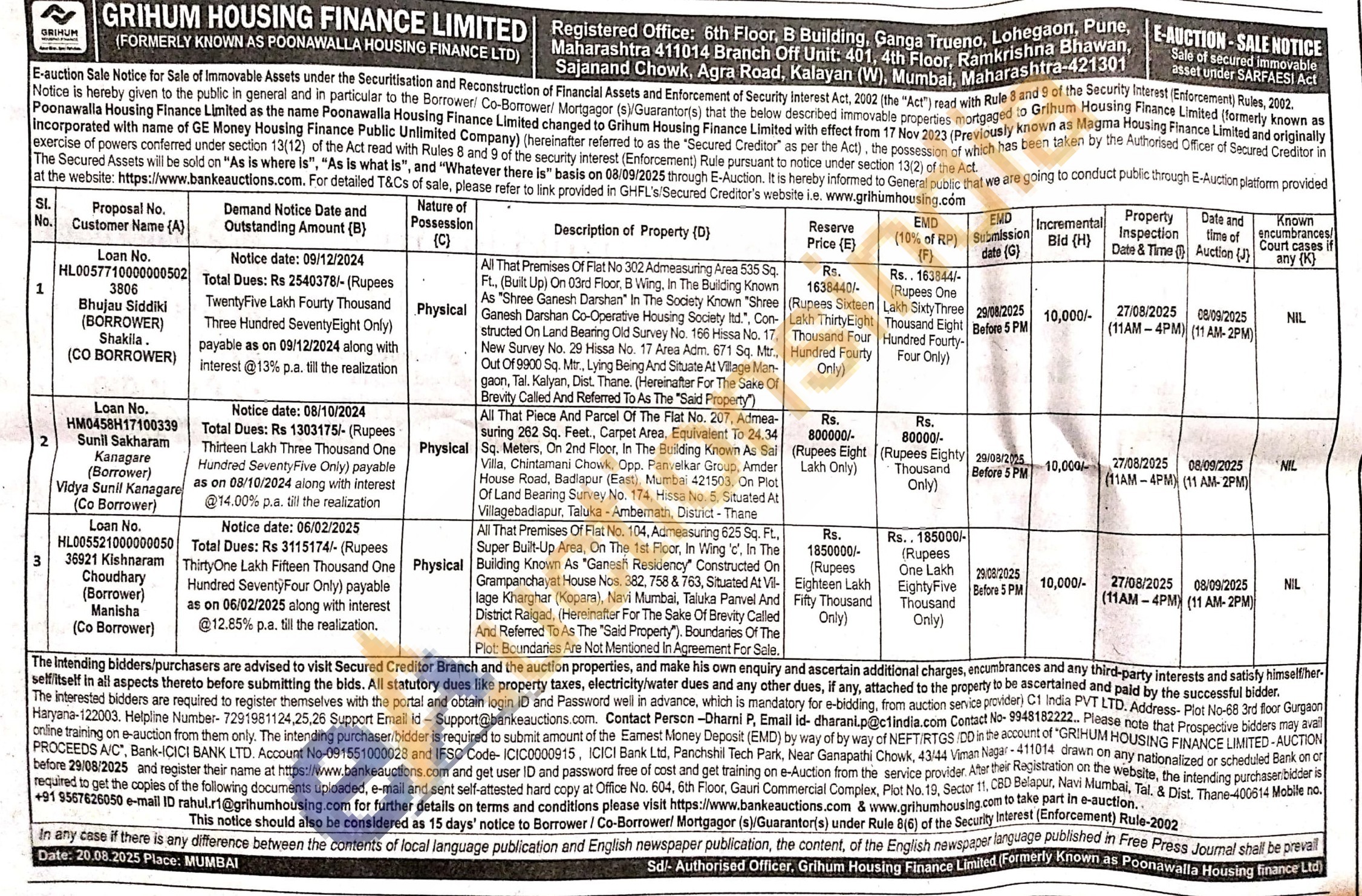 3) All That Premises Of Flat No. 104, Admeasuring 625 Sq. Ft., Super Built-Up Area, On The 1st Floor, In Wing 'c', In The Building Known As "Ganesh Residency Constructed On Grampanchayat House Nos. 382, 758 & 763, Situated At Vil-lage Kharghar (Kopara), Navi Mumbai, Taluka Panvel And District Raigad, (Hereinafter For The Sake Of Brevity Called And Referred To As The "Said Property"). Boundaries Of The Plot: Boundaries Are Not Mentioned In Agreement For Sale
