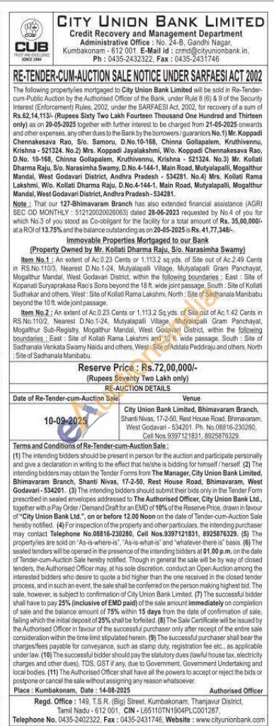 Item No. 2: An extent of Ac.0.23 Cents or 1.113.2 Sq yds. of Site out of Ac.1.42 Cents in RS.No.110/2, Nearest D.No.1-24, Mutyalapalli Village, Mutyalapalli Gram Panchayat, Mogalthur Sub-Registry, Mogalthur Mandal, West Godavari District, within the following boundaries: East: Site of Kollati Rama Lakshmi and 10 ft. wide passage. South: Site of Sadhanala Venkata Swamy Naidu and others, West: Site of Addala Peddiraju and others, North Site of Sadhanala Manibabu