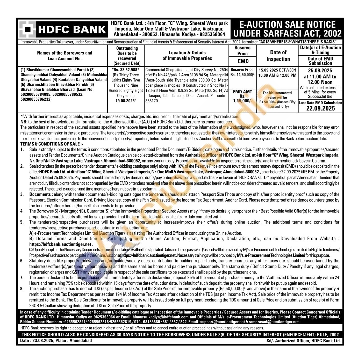Commercial Shop situated at City Survey No 2504 of of Rs No 448/paiki2 Area 3108.94 Sq. Meter paiki West-South side Tryangle adm 900.00 Sq. Meter open place in shopies 19 Constructed in Shop No F-12, First Flooe Adm. 0.9.29 Sq. Meter(100 Sq. Ft) At Tarapur, Tal Tarapur, Dist Anand, Pin code 388170