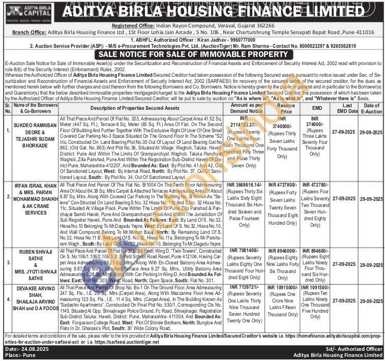 All That Piece And Parcel Of The Flat No. B/1004 On The Tenth Floor Admeasuring Area Of About 64.38 Sq. Mtrs Carpet & Attached Terraces Admeasuring Area Of About 6.87 Sq. Mtrs. Along With Covered Car Parking In The Building No. B Known As "Se-lene" Con-Structed On Land Bearing S.No. 32 Hissa No. 11b And S.No. 32 Hissa No. 11c, Situated At Village Pisoll, Pune Within The Limits Of Pune Zilla Parishad & Pan-chayat Samiti Havel, Pune And Grampanchayat Pisoli And Within The Jurisdiction of Sub Registrar Haveli, Pune. And Bounded As Follows: East: By Land Of S. No.32, Hissa No. 10 Belonging To Mr.Dagadu Yepre, West: By Land Of S. No. 32, Hissa No.10, And Wall Compound Belong To Mr. Mohan Bajaj, North: By Remaining Land Of S No.32, Hissa No.11 B. And Land Of S. No. 32, Hissa No.11a, Belonging To Mr.Parshu-ram Wagh, South: By Land Of S. No.32, Hissa No. 10, Belonging To Mr.Dagadu Yepre