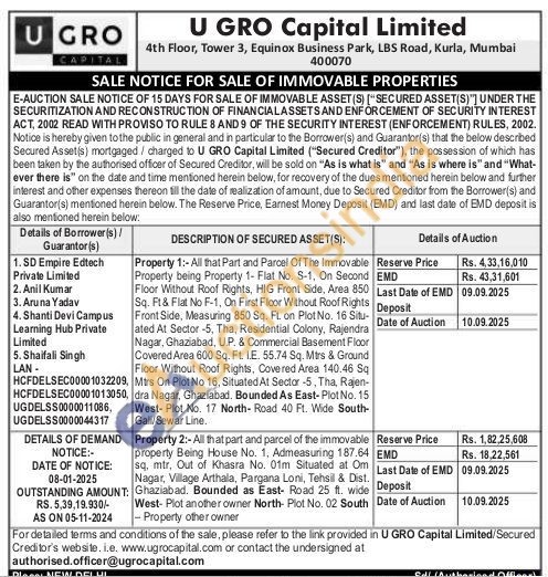 All that Part and Parcel Of The Immovable Property being Property 1- Flat No. S-1, On Second Floor Without Roof Rights, HIG Front Side, Area 850 Sq. Ft & Flat No F-1, On First Floor Without Roof Rights Front Side, Measuring 850 Sq. Ft. on Plot No. 16 Situ-ated At Sector -5, Tha, Residential Colony, Rajendra Nagar, Ghaziabad, U.P. & Commercial Basement Floor Covered Area 600 Sq. Ft. IE. 55.74 Sq. Mtrs & Ground Floor Without Roof Rights, Covered Area 140.46 Sq Mtrs On Plot No 16, Situated At Sector -5, Tha, Rajen-dra Nagar, Ghaziabad