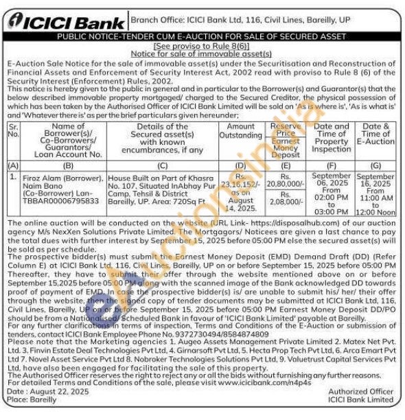 House Built on Part of Khasra No. 107, Situated InAbhay Pur Camp. Tehsil & District Bareilly, UP. Area: 720Sq Ft