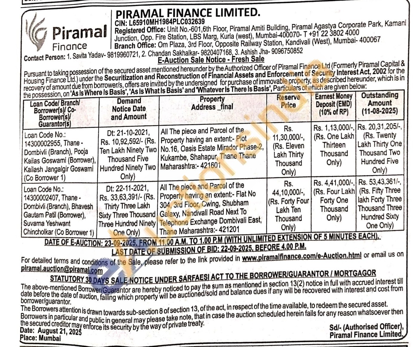 Contact Person: 1. Savita Yadav-9819960721, 2. Chandan Sakhalkar- 9820407168, 3. Ashish Jha-9096750852