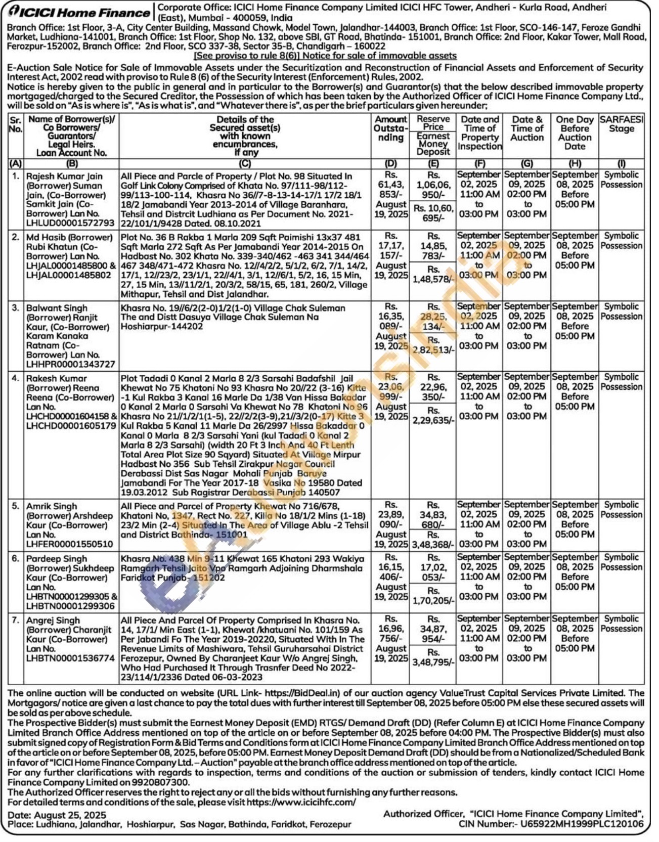 All Piece And Parcel Of Property Comprised in Khasra No. 14, 17/1/Min East (1-1), Khewat/khatuani No. 101/159 As Per Jabandi Fo The Year 2019-20220, Situated With In The Revenue Limits of Mashiwara, Tehsil Guruharsahai District Firozpur, Owned By Charanjeet Kaur W/o Angrej Singh, Who Had Purchased It Through Trasnfer Deed No 2022-23/114/1/2336 Dated 06-03-2023