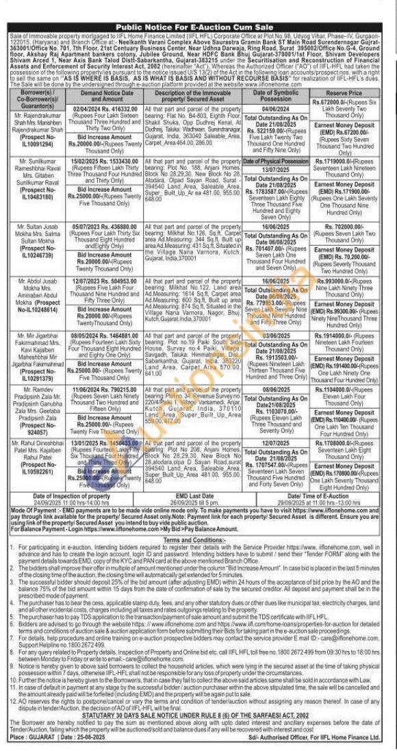 All that part and parcel of the property bearing: Plot No. 188, Anjani Homes, Block No 28,29,30, New Block No 28. Atodara, Cipad Sayan Road, Surat 394540 Land Area, Saleable Area, Super Built Up Area 481.00, 955.00 648.00