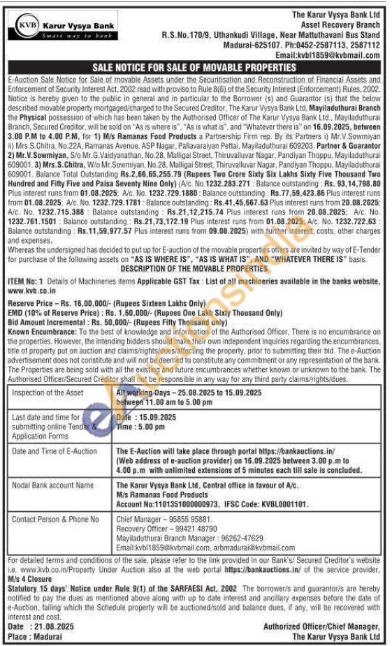ITEM No: 1 Details of Machineries items Applicable GST Tax List of all machineries available in the banks website, www.kvb.co.in