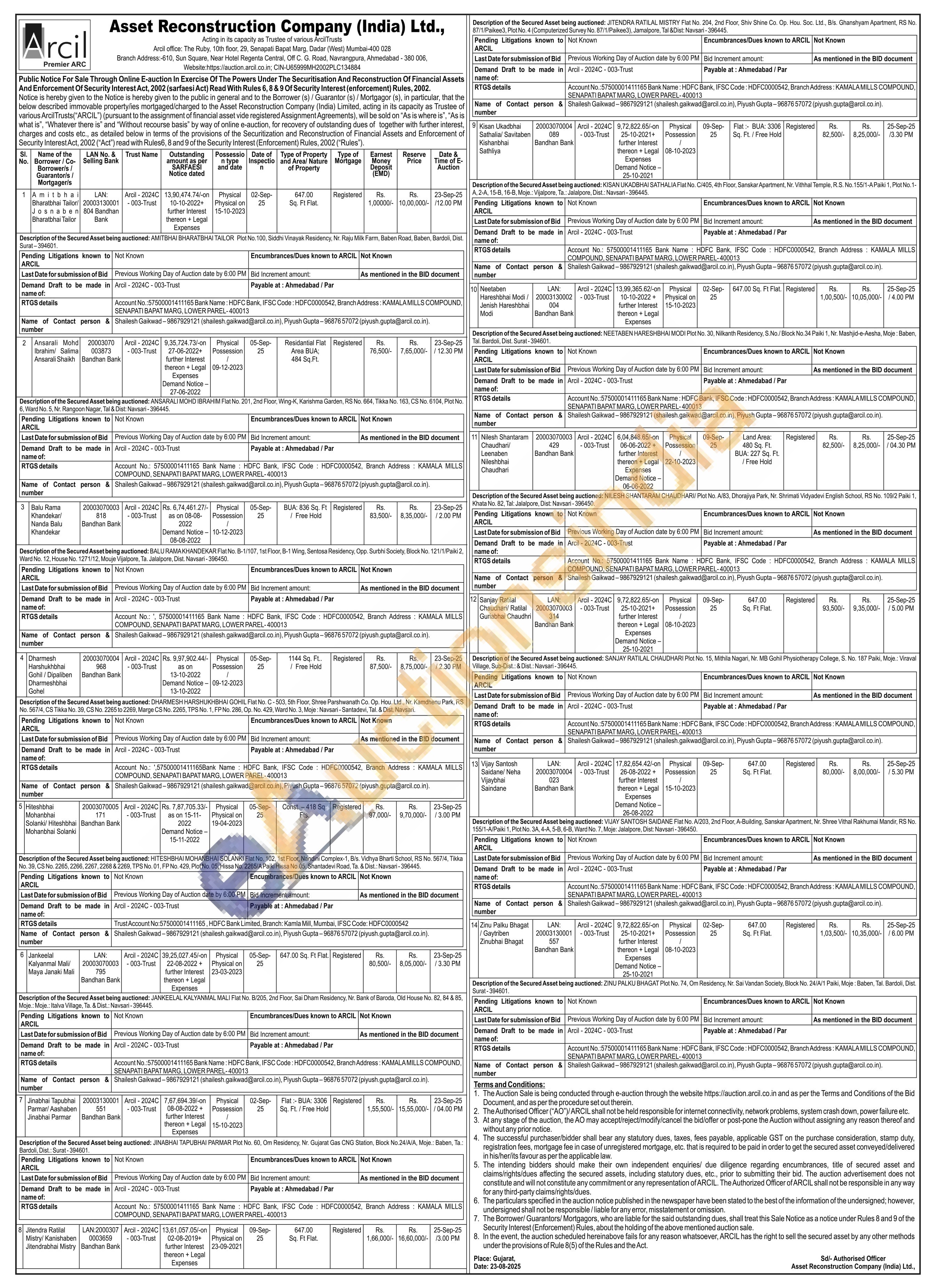 Description of the Secured Asset being auctioned: VIJAY SANTOSH SAIDANE Fiat No. A/203, 2nd Floor, A-Building, Sanskar Apartment, Nr. Shree Vithal Rakhumai Mandir, RS No. 155/1-A/Paiki 1, Plot No. 3A, 4-A, 5-B, 6-B, Ward No. 7, Moje: Jalalpore, Dist: Navsari-396450