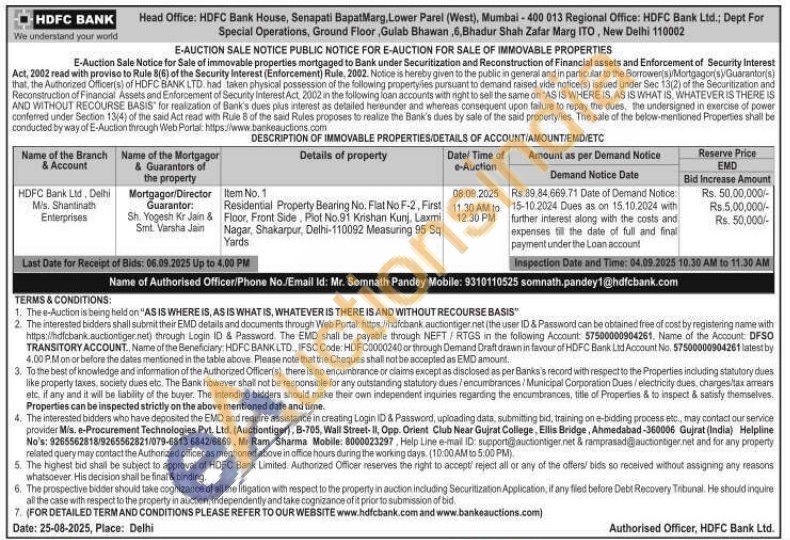 Residential Property Bearing No. Flat No F-2, First Floor, Front Side, Plot No.91 Krishan Kunj, Laxmi Nagar, Shakarpur, Delhi-110092 Measuring 95 Sq Yards