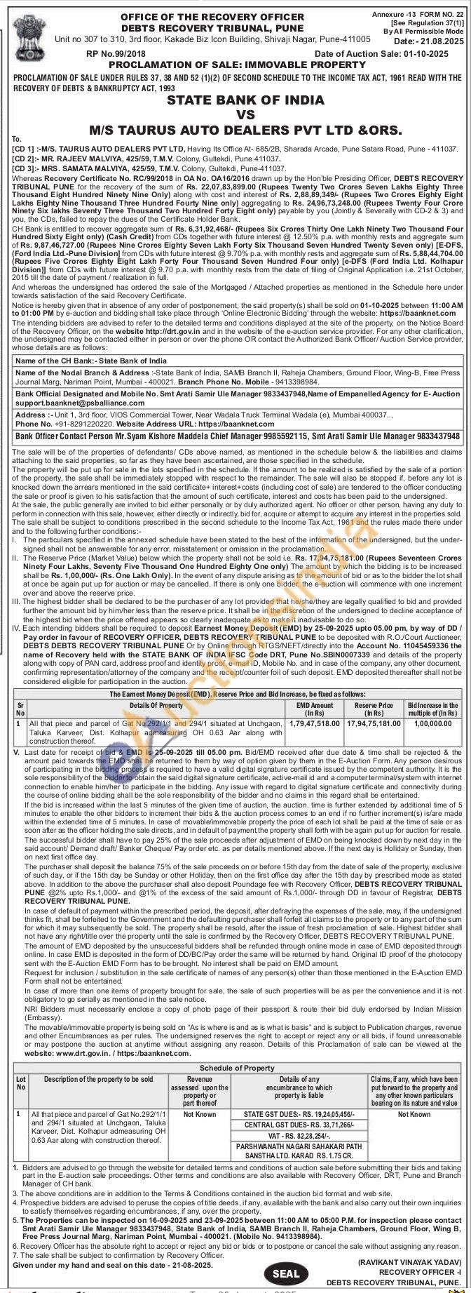 All that piece and parcel of Gat No.292/1/1 and 294/1 situated at Unchgaon, Taluka Karveer, Dist. Kolhapur admeasuring OH 0.63 Aar along with construction thereof