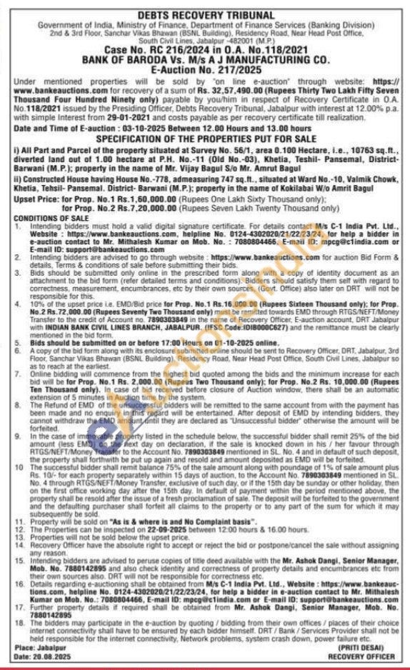 (Constructed House having House No.-778, admeasuring 747 sq.ft., situated at Ward No.-10, Valmik Chowk, Khetia, Tehsil-Pansemal. District- Barwani (M.P.); property in the name of Kokilabai W/o Amrit Bagul