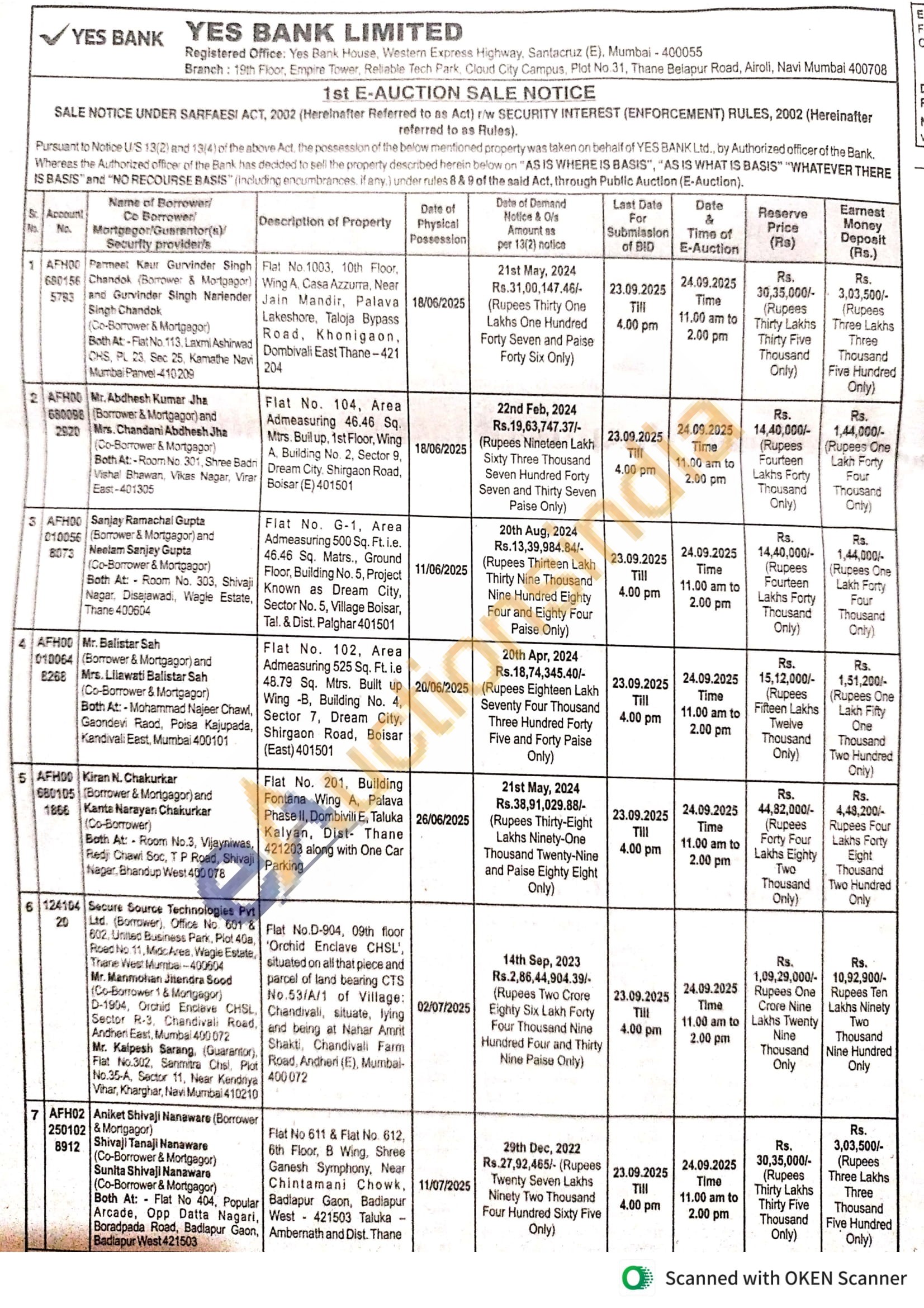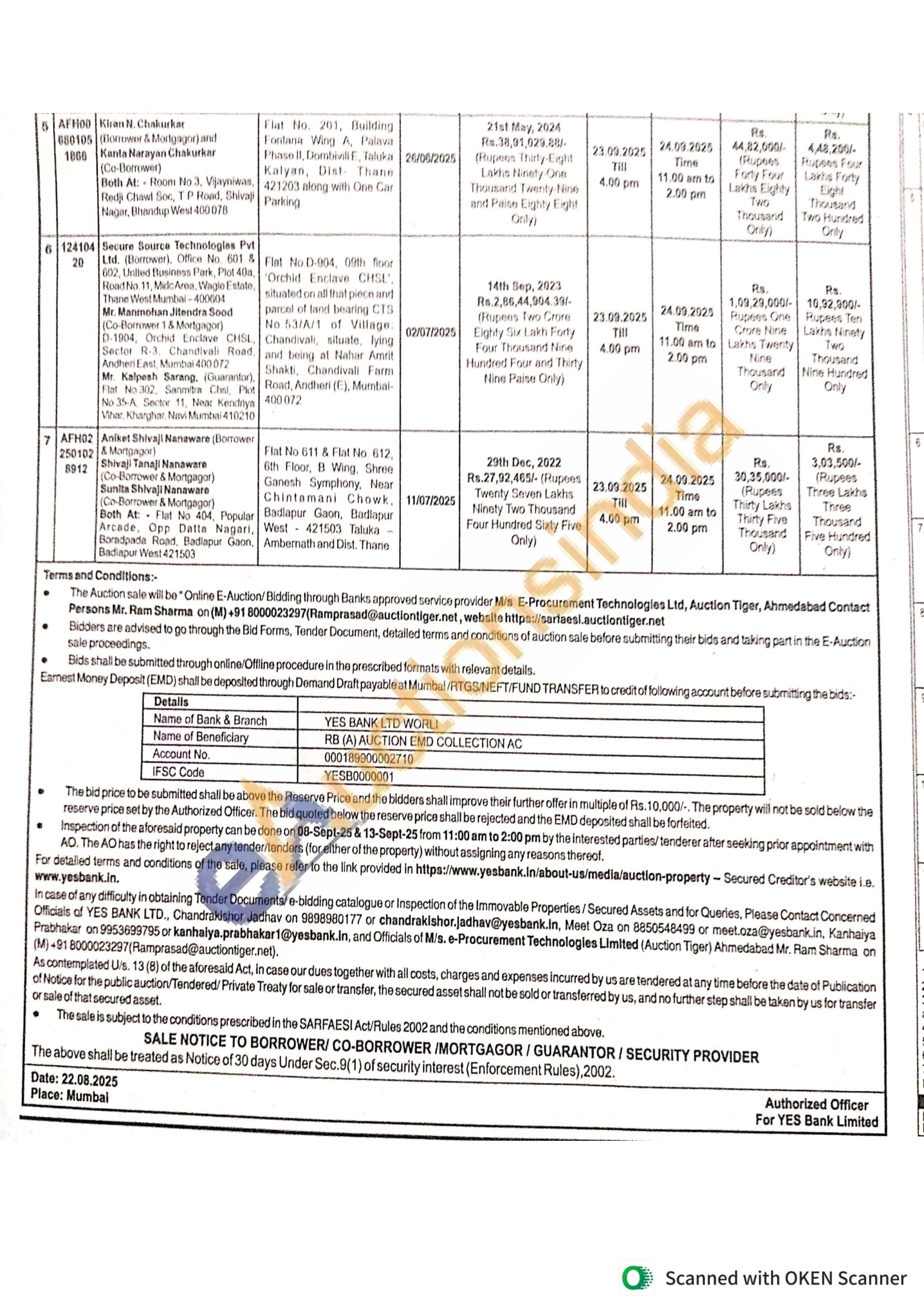 6) Flat No.D-904, 09th floor Orchid Enclave CHSL, situated on all that piece and parcel of land bearing CTS No.53/A/1 of Village: Chandivali, situate, lying and being at Nahar Amvit Shakti, Chandivali Farm Road, Andheri (E) (E), Mumbai 400072