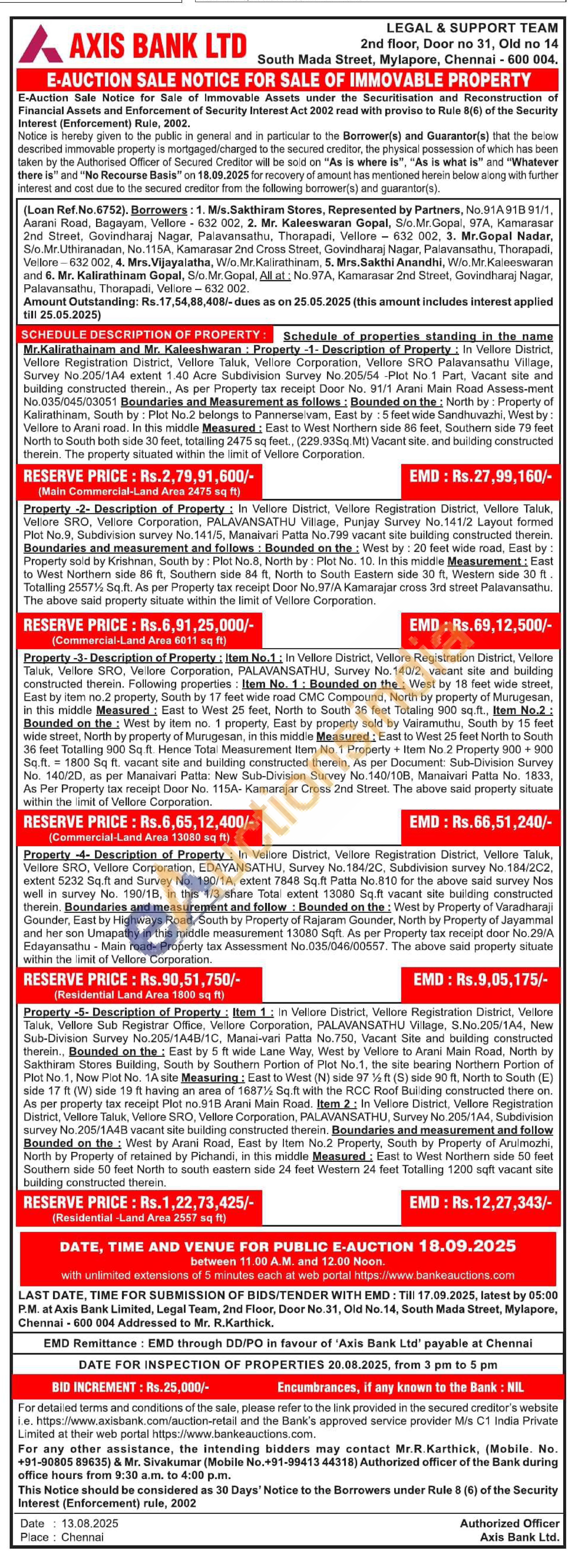 contact Mr.R. Karthick, (Mobile. No. +91-90805 89635) & Mr. Sivakumar (Mobile No. +91-99413 44318) Authorized officer